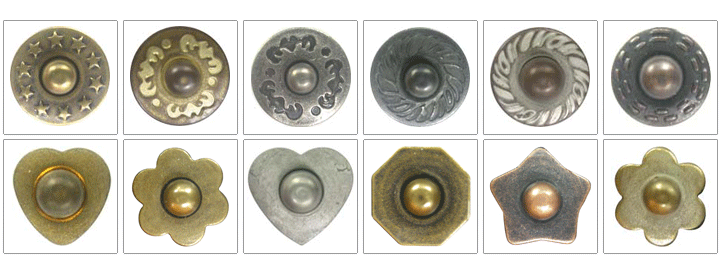 撞釘是作為口袋周圍和側(cè)面接縫等處的強度補強?!羔敗故窃谕鈧?cè)的裝飾部分,而「扣」則是置于布的內(nèi)側(cè)用來固定。所有的YKK釘扣組合皆最大程度得結(jié)合了強度及高質(zhì)量的外觀。可適用于個性化的標(biāo)志設(shè)計,采用多種多樣的金屬并結(jié)合相匹配的表面處理以提高它們的外觀和性能。